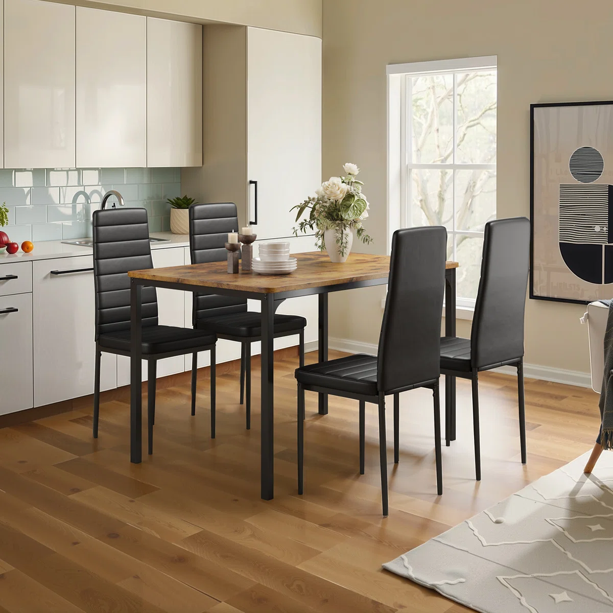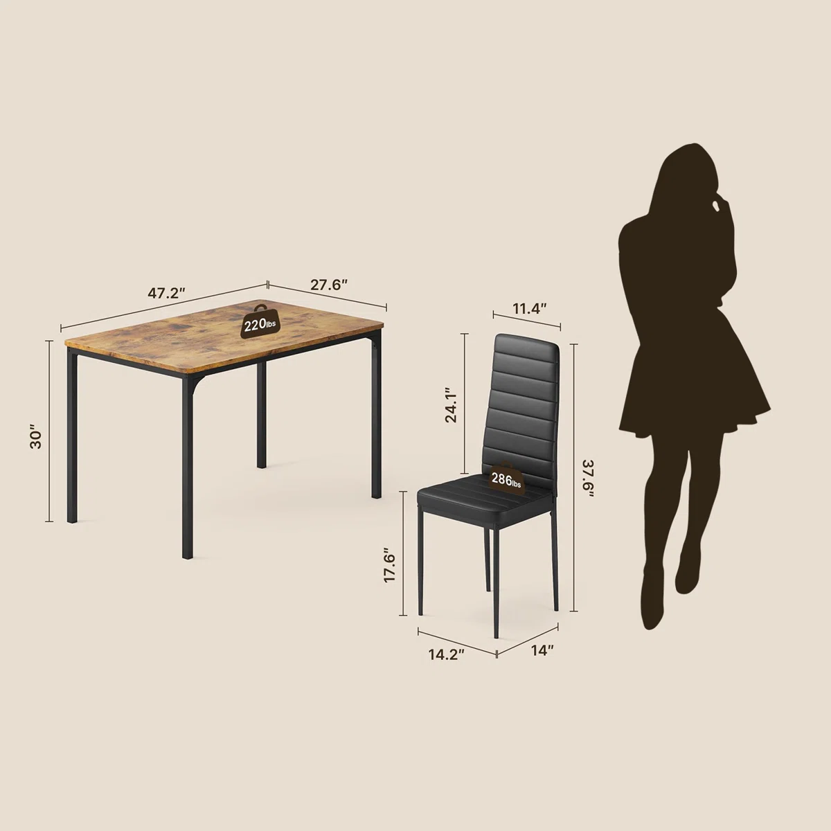 Upgrade your dining area with this stylish and modern dining table set for 4, combining industrial charm with contemporary elegance. Featuring a durable solid wood table, ergonomic chairs with leather trim, and a compact, space-saving design, this set is perfect for small spaces like apartments or kitchens. Easy to clean and assemble, it’s the ideal choice for enjoying cozy meals with family and friends.