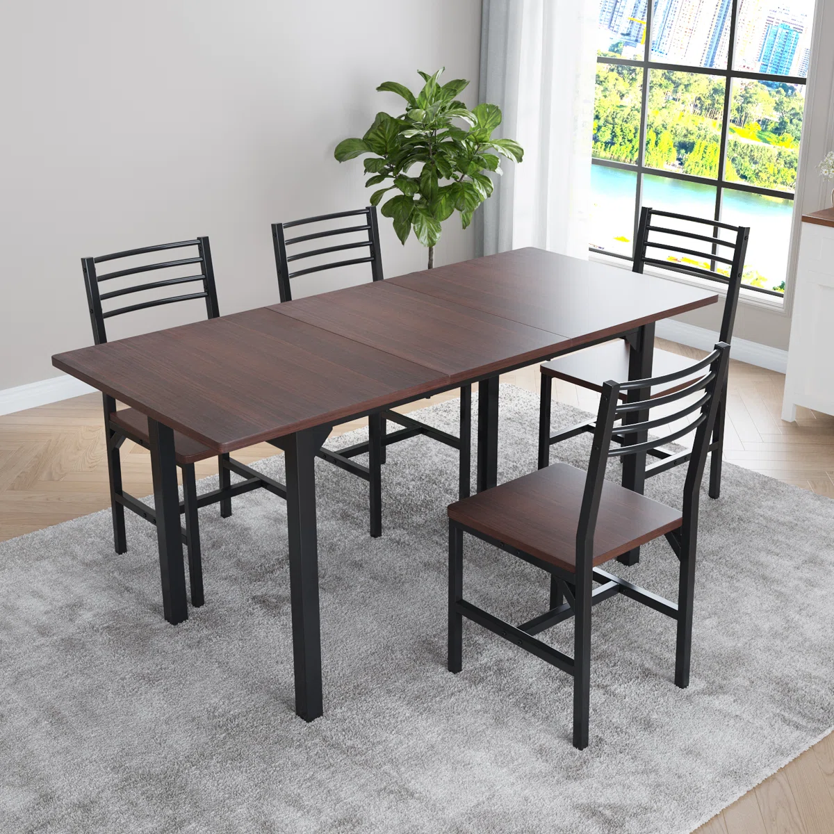 - Perfect for 4-6 people: Our dining table set is perfect for family and friends gatherings. The expandable design can easily extend the table to 63 inches, allowing 6 people to dine without worrying about crowded seats, enjoying every meal in comfortable